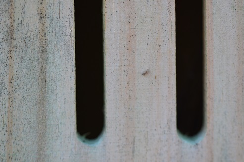 Am Insektenhotel sah ich ganz schwach eine kleine Fliege. Um was handelte es sich bei dem höchstens 2 mm langen Tier?