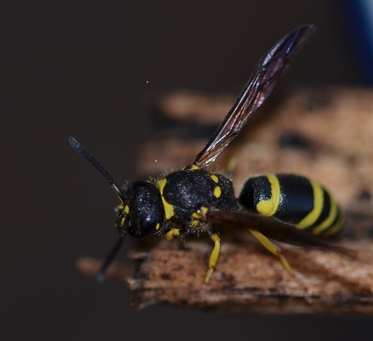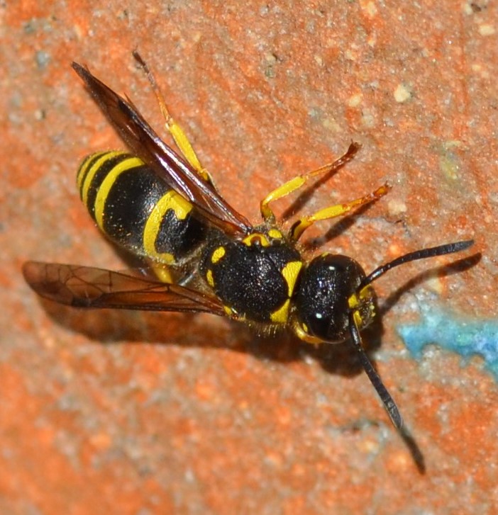 Ein kleines, wespenartiges Insekt, Ancistrocerus gazella, eine Faltenwespe, konnte ich abends vor dem Ertrinken retten.