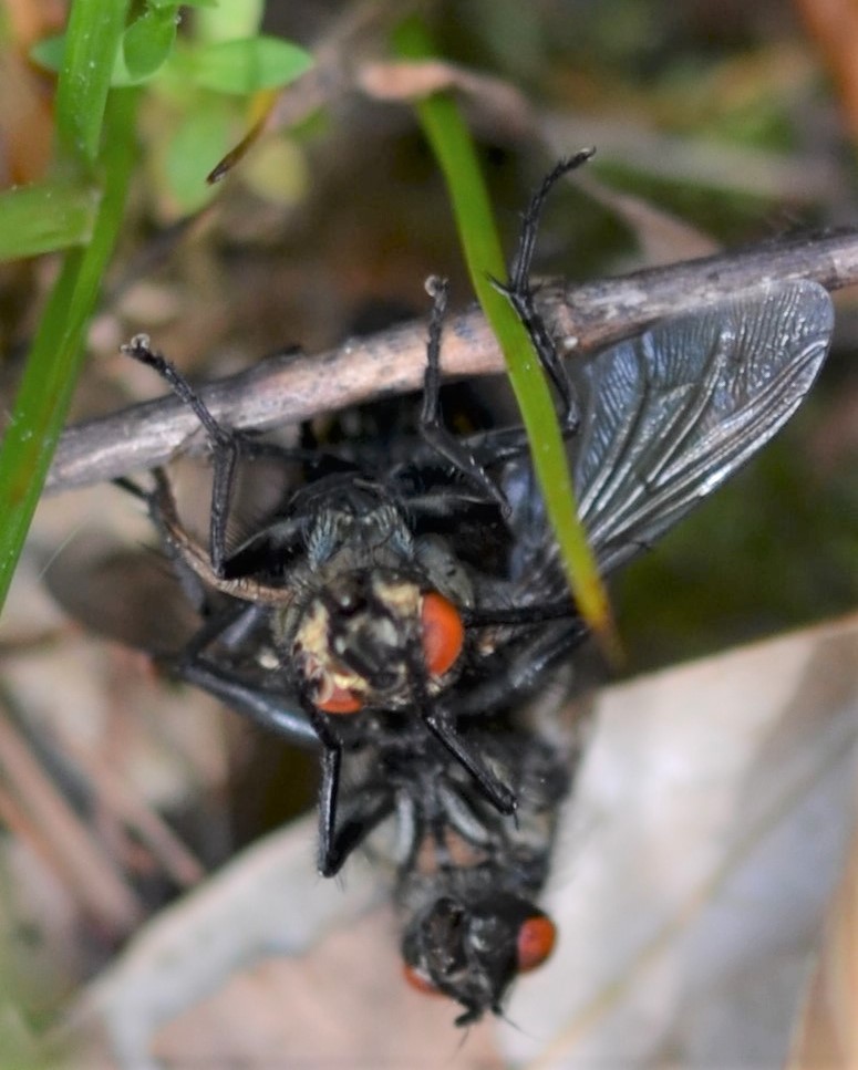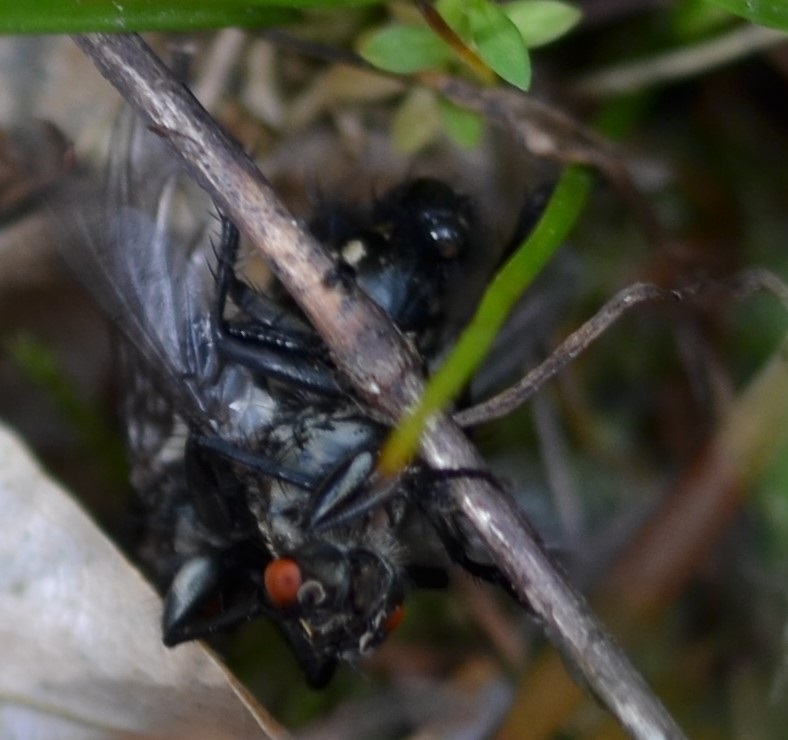 Diese Schmeissfliege hatte ich im November 2019 fotografiert, auf einer ihrer damaligen letzten Futterstationen, dem Efeu, der dann allerdings doch noch bis Mitte Dezember als solcher diente.