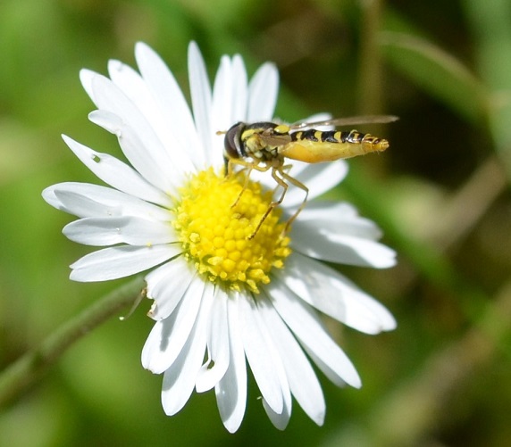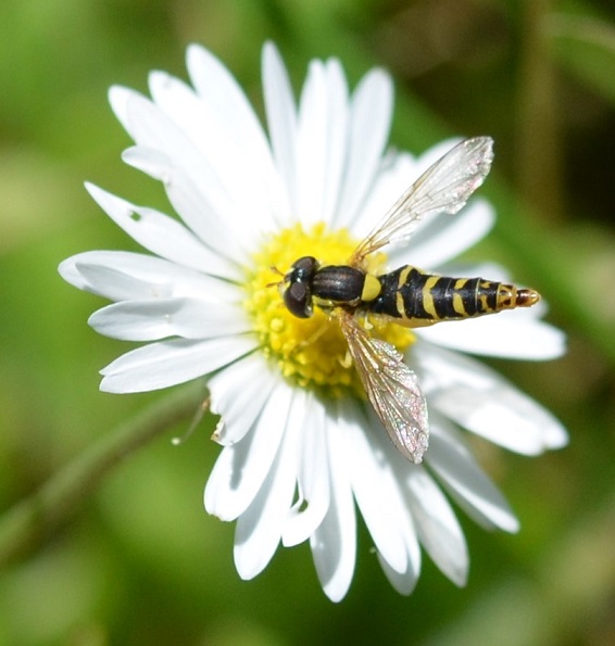 Langbauchschwebfliege – Die Streifen erscheinen nur aufgemalt.