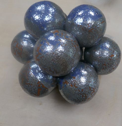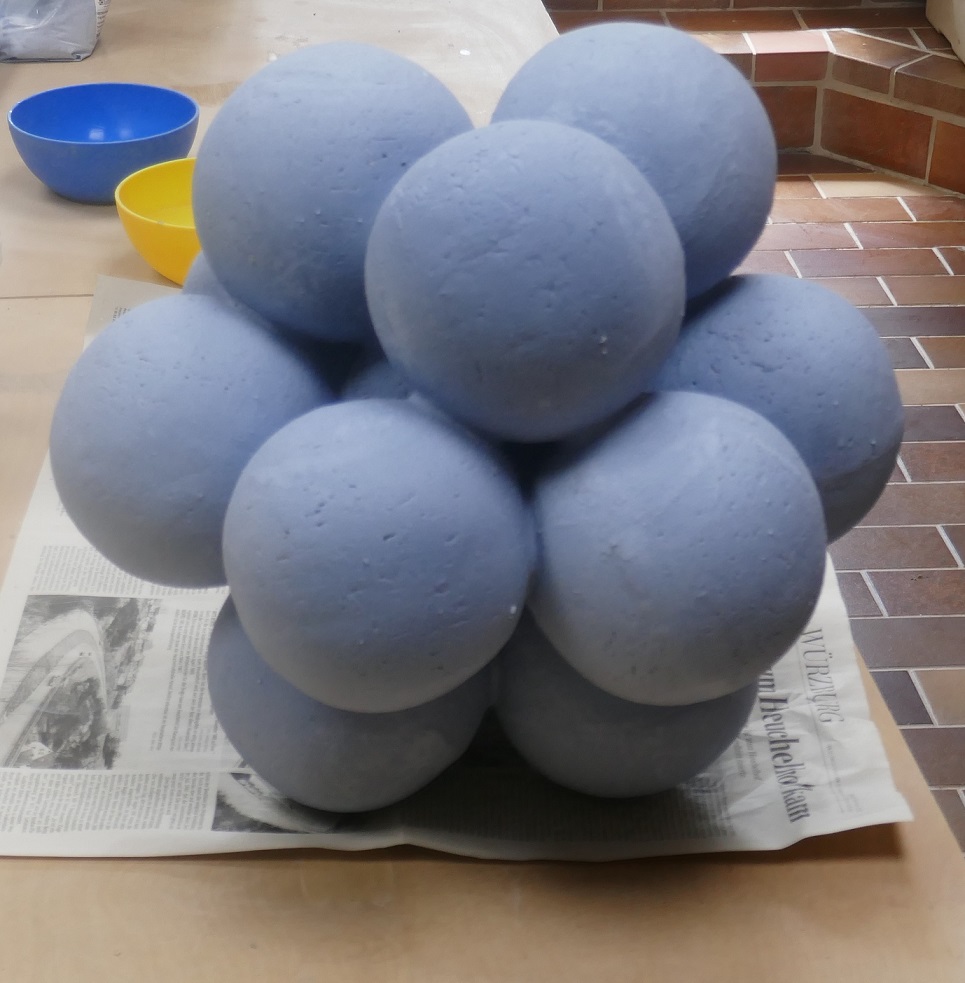 These 13 balls each 15 cm were showered with REDOX BLUE. I worked on the unreached areas with a brush.