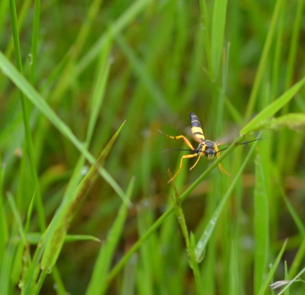 1. Einen Moment dachte ich an die Gelbe Schlupfwespe, aber die hat wohl ein anderes Streifenmuster? Wenn es denn überhaupt eine Schlupfwespe ist. Ich hab mir da schon des öfteren einen Wolf gesucht, kicher, und dann war es eine Blattwespe (Tenthredo).