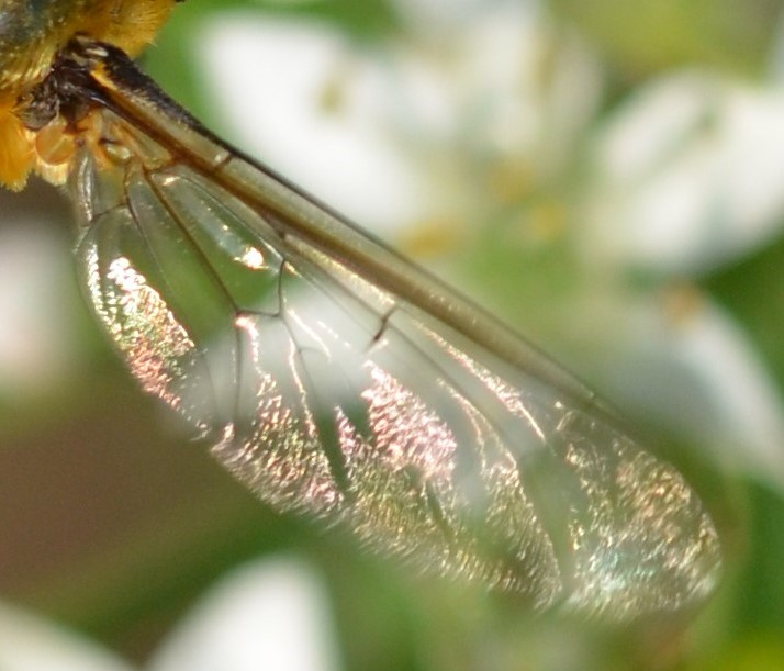 Ja, die Flügel des Wollschwebers sind schön strukturiert und sein immenser Saugrüssel…