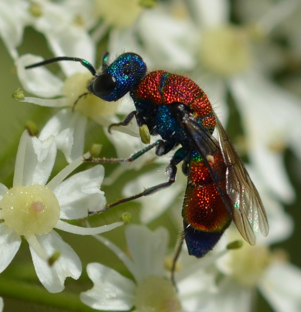 Ich sah sie dieses Jahr etwas öfter als sonst, aber nur, weil ich mehr am Wiesenrand unterwegs war. Da tummelten sie sich eine Zeit lang. Kommt Zeit, kommt Goldwespe 😉