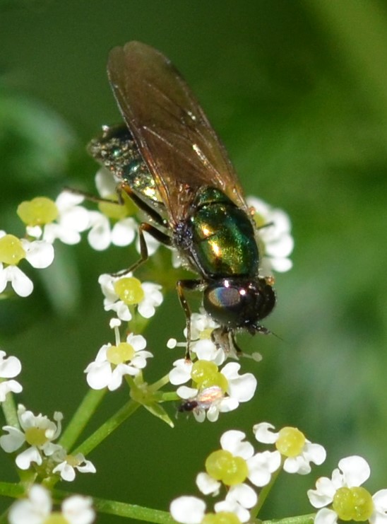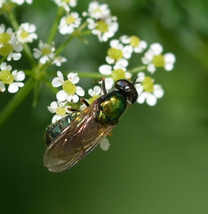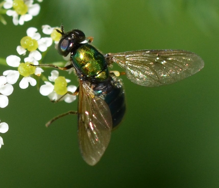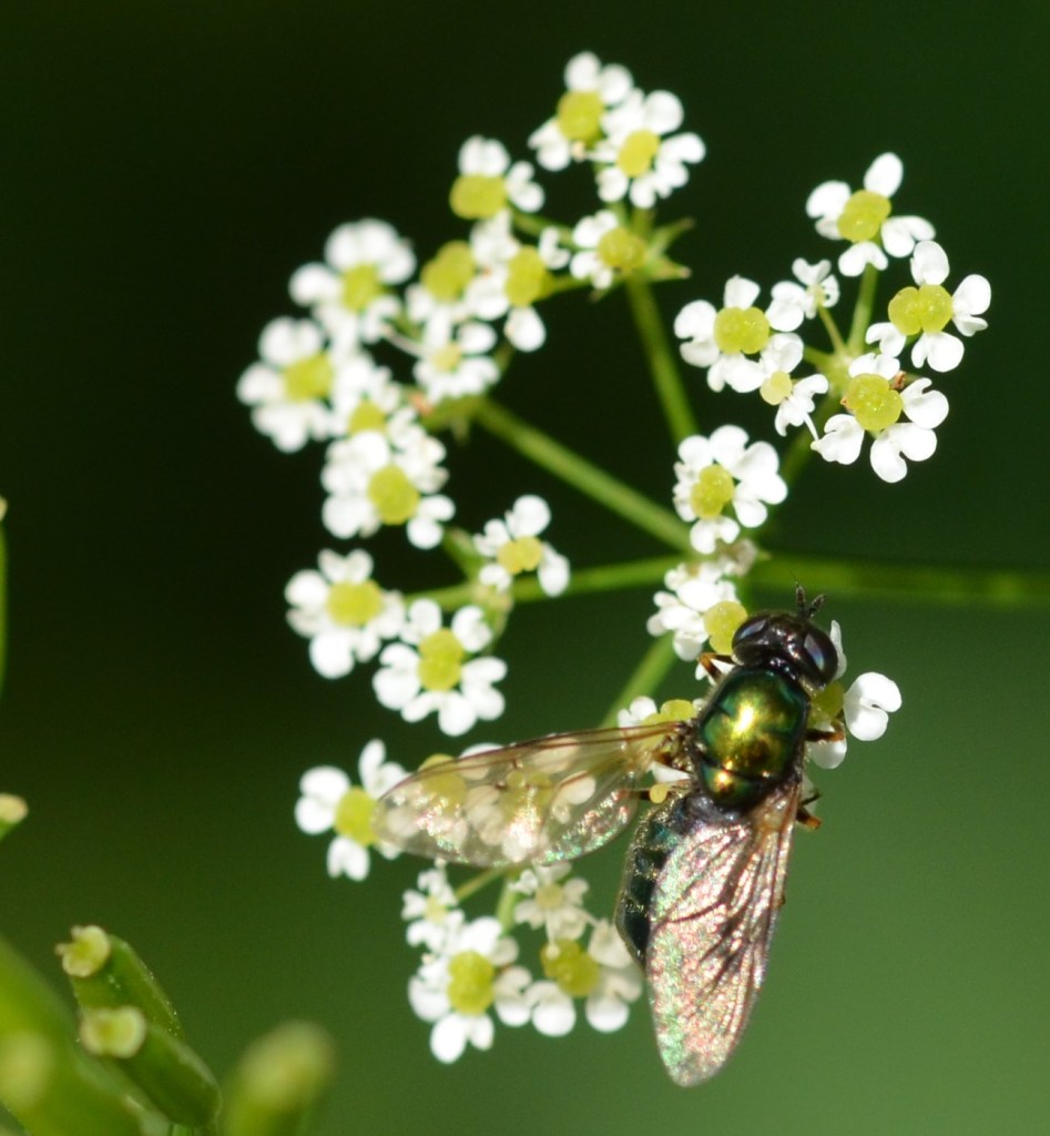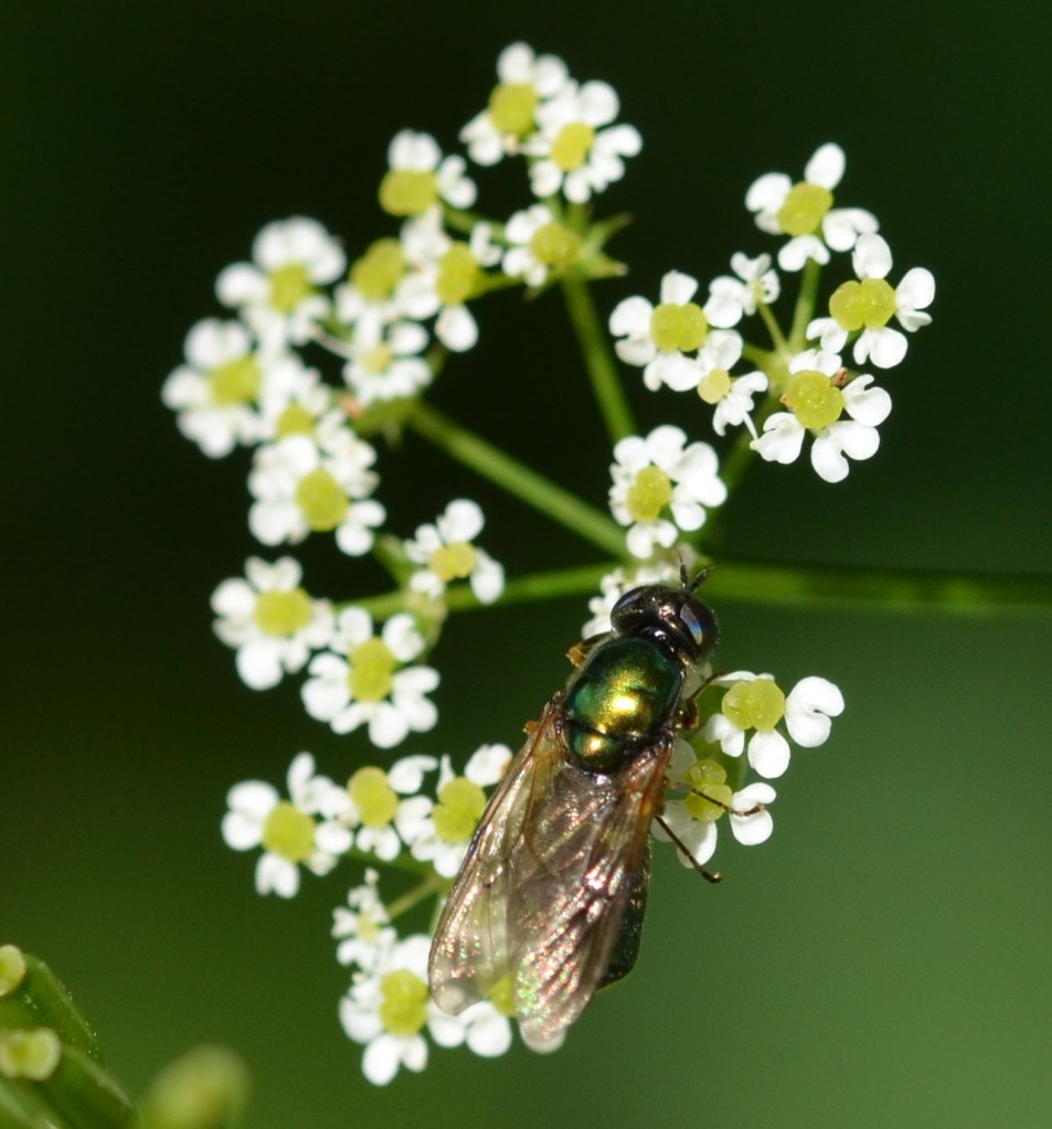 (Chloromyia formosa) auf Gewürz-Kälberkropf (Chaerophyllum aromaticum)