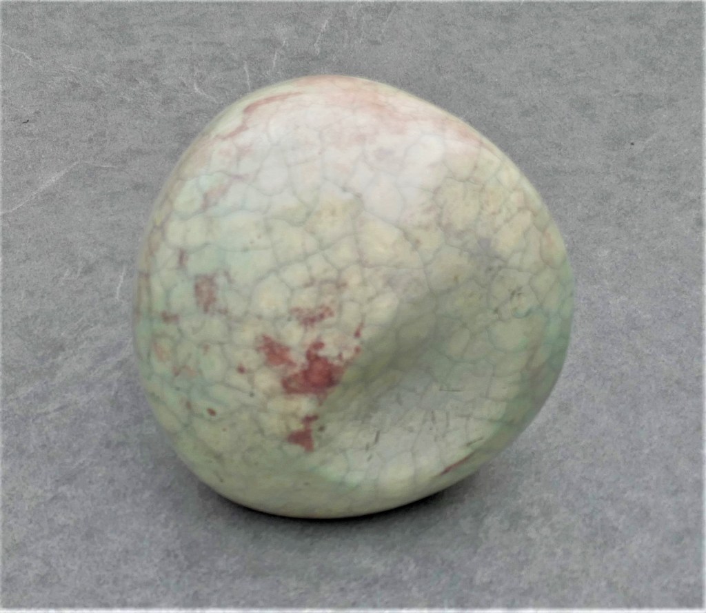 Diese Arbeiten hatte ich einem Rakubrand überlassen, der zufällige Farb-Ergebnisse auf der Glasur zeitigt. Durch die rasche Abkühlung im Sägemehl ergeben sich die auffälligen Risse.