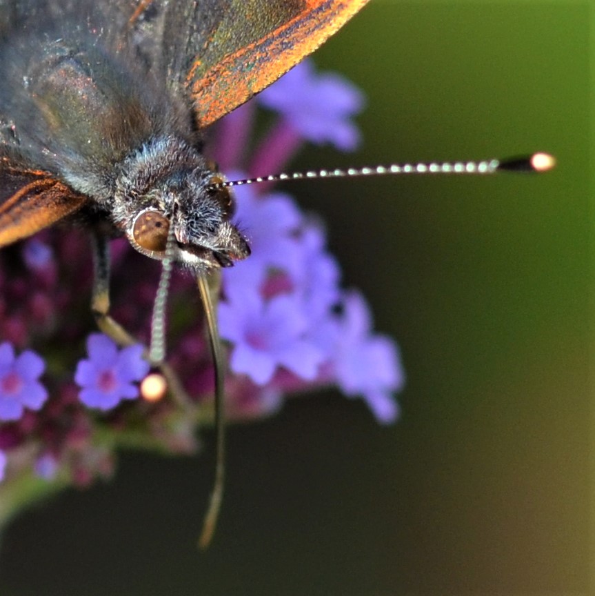 Das Eisenkraut wirkt wegen seiner Farbe und zentralen Position sehr stark – trotz der Unschärfe. Und dennoch kann es so dem Admiral eine Bühne bieten. Brillant komponiert lieber Gerhard.