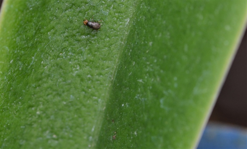 Drei dieser – mit blossem Auge – an kleine Käfer erinnernte Geschöpfe rasten unentwegt auf dem Blatt herum.