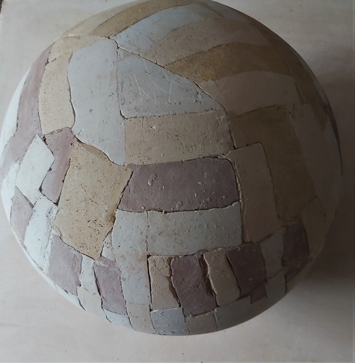 1. Spontan dachte ich: sieh da, der Fund eines prähistorischen Fußballs! Beim Weiterlesen bemerkte ich: Aber der wird sich, aus diesem Material, nicht unbedingt bewährt haben. Ton zu Ton, Ton in Ton – eine längerwährende, detailverliebte Tätigkeit…