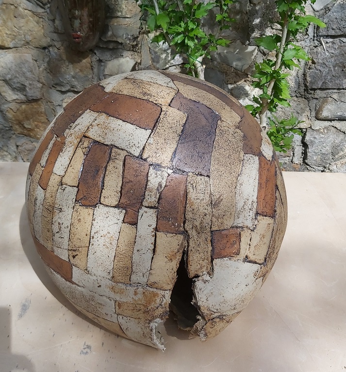 Ich finde sie wunderschön mit dieser Verletzung, wie sie aus dem Ofen gekommen ist, sehr lebendig. Bepflanzung hätte sie meiner Meinung nach nicht nötig; wenn sie ganz geblieben wäre, hätte sie doch auch keine Deko mit Grünzeug bekommen.