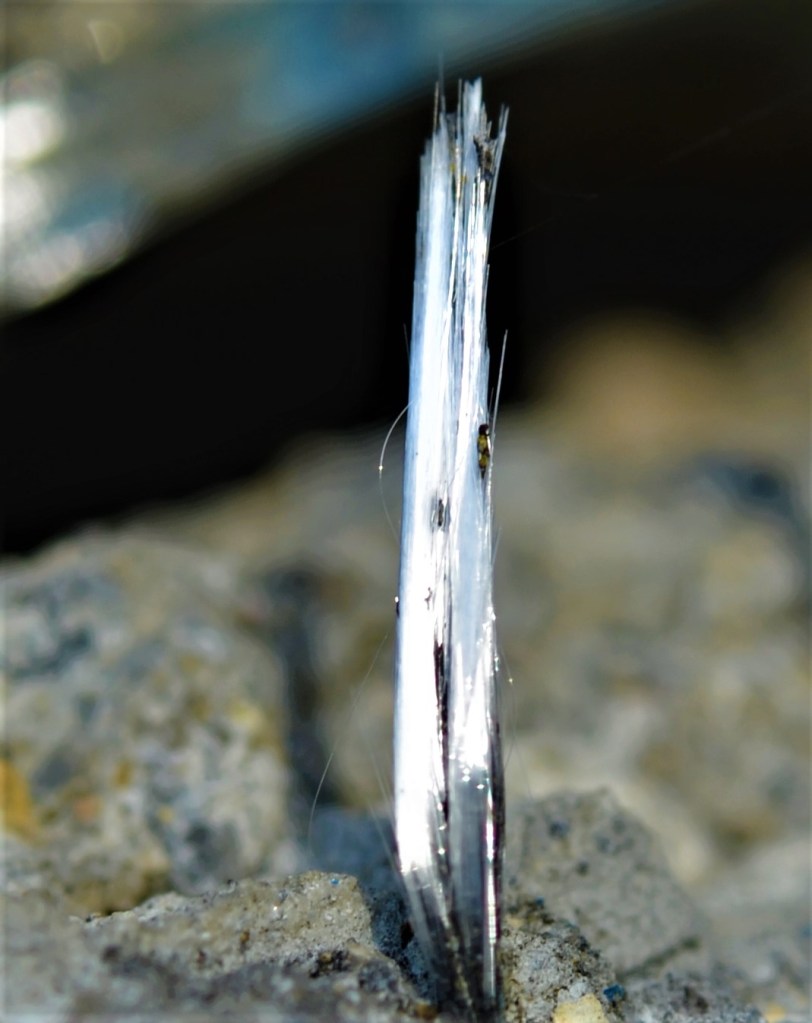 Ein gerissenes Metallbändchen in einem Mauerwerk. Man braucht so etwas um den Putz zusammenzuhalten.