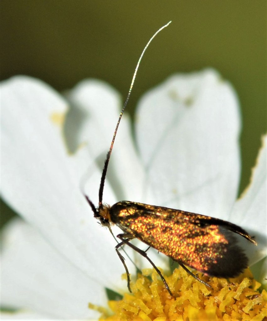 Desweiteren begegnete mir heute Adela reaumurella , eine bronzene Variante dieser Langhornmotten.