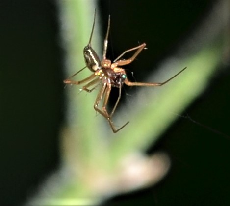 Ein winziges Spinnchen kletterte entlang eines langen Fadens und einen ebenso großen weiter.