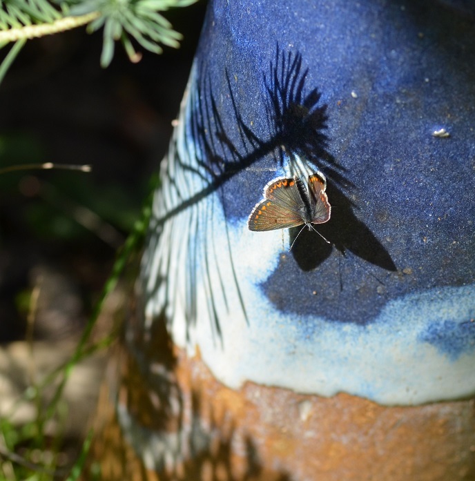 Emsig wie eh und je!Im Himmel ein ähnliches Bild. Auf Geleisen ziehen lautlos Flugzeuge ihre Bahn.Ein 3 mm großes Käferchen hat sich in meinem neuen Doppelwandgefäss verirrt. Ich hatte es mit Wasser gefüllt, um die Dichtigkeit zu prüfen. Natürlich setzte ich das Käferchen aufs Trockene.Ein Hauhechelbläuling geniesst die Sonne auf einer meiner Keramiken.Und diese Wanze geniesst den Ausblick. Schön, wenn es wieder wärmer ist oder?!