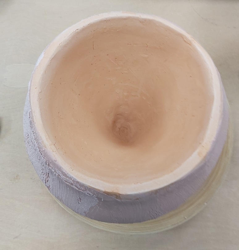 Das folgende Gefäss mit Kegelinnenseite habe ich aussen und innen durch Schüttung zweier Glasurfarben glasiert.