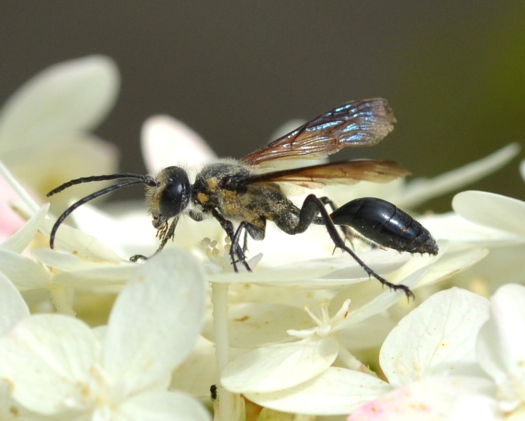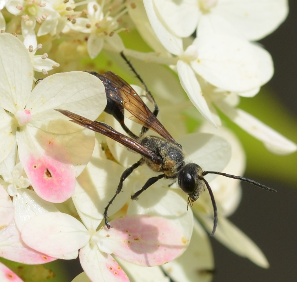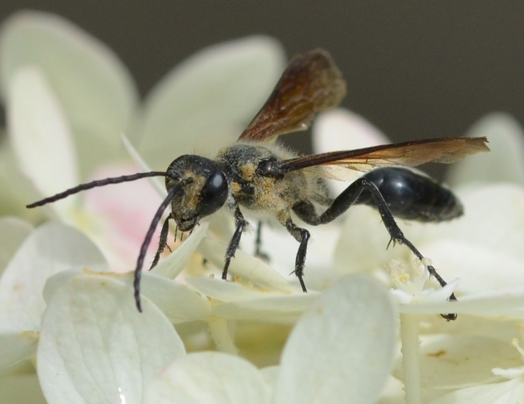 Imposant ist der stahlblaue Grillenjäger (Isodontia mexicana).