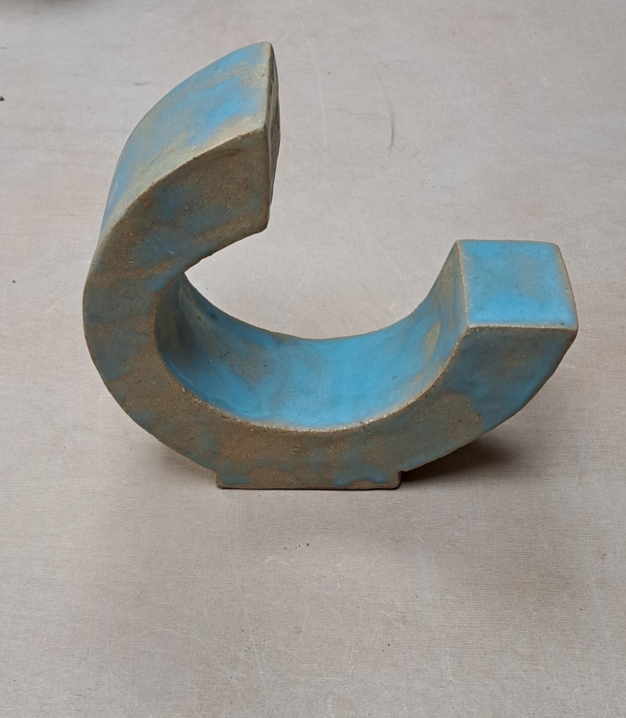 Das Himmelblau lässt das Objekt auf der linken Seite noch mehr nach oben streben. Aber eigentlich gefällt es mir am besten ohne Glasur. Aber das ist eine persönliche Vorliebe für unglasierten Ton, der mit deinem Objekt eigentlich nichts zu tun hat