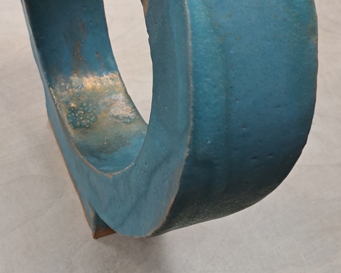 Dieses “Manko” war fast zu erwarten, Petra, man sieht nicht genau, was die Begießung der Skulptur leistet. Offenbar ist etwas Glasur an Stellen abgedriftet.