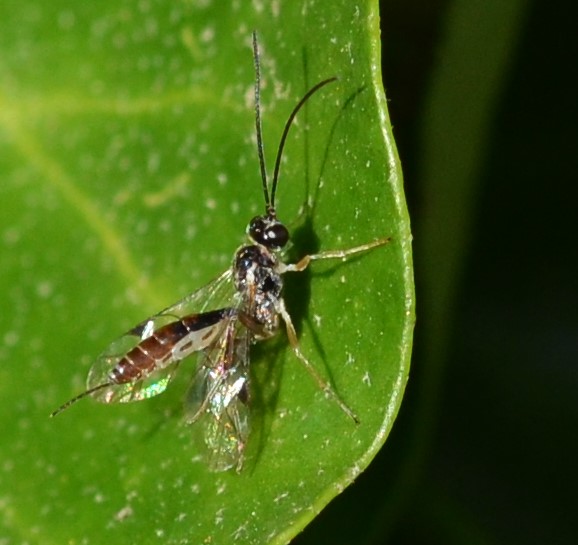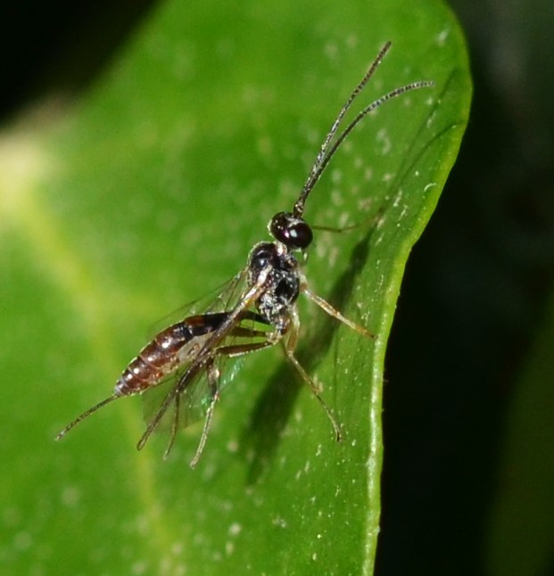 Und wieder eine andere winzige Schlupfwespe dehnt und steckt sich ausgiebig: