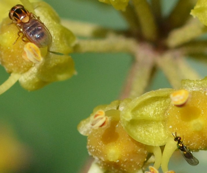 Eine 3 mm lange Halmfliege konkurriert mit einer Erzwespe um die Krone des kleinsten Insekts an diesem Tag.