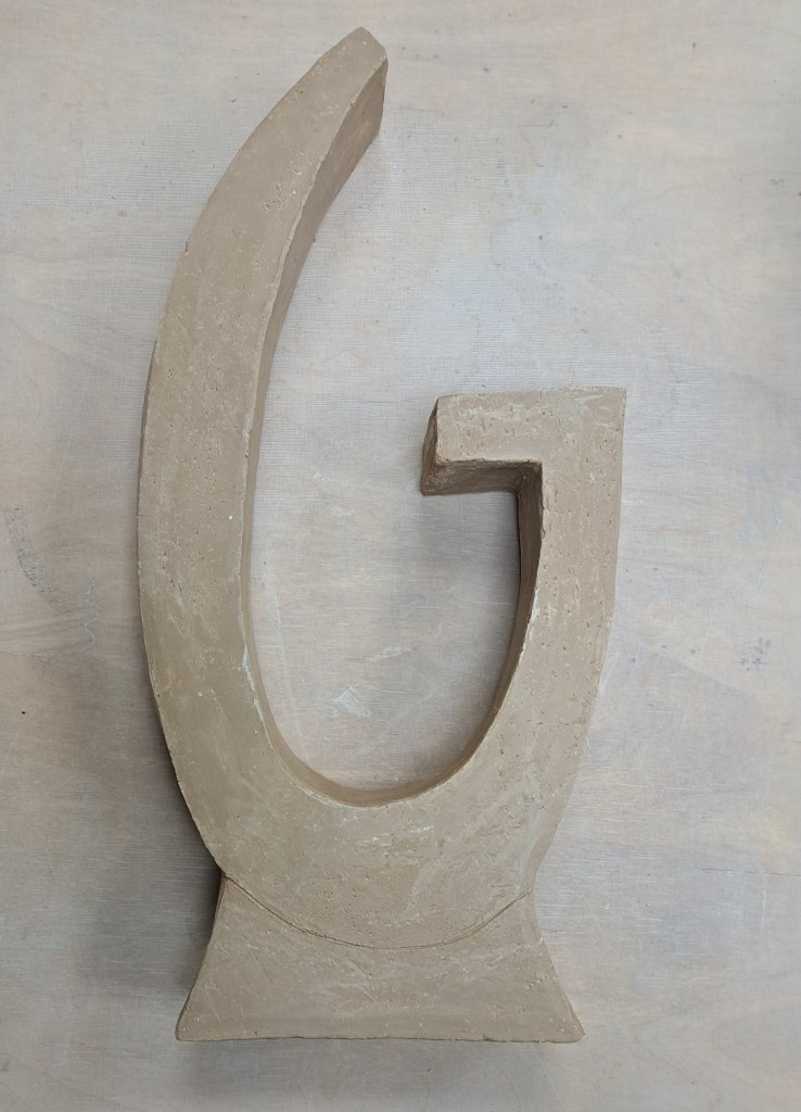 1. Grauguß? Nein. Wie stets, aus Ton soll es sein. Aber willst Du ein ganzes Alphabet formen? Das dauert und erinnert an frühe Schriften, die es den Schreibern auch nicht leicht machten.