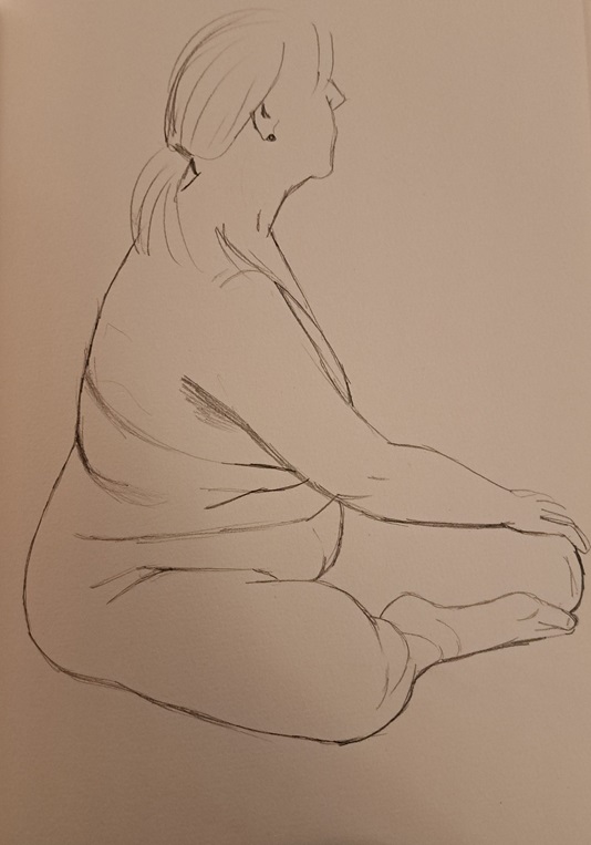 Bemerkenswert auch der ältere Herr, der das Modellstehen ohne jede Probleme schaffte. Manche sind eben durch robuste Gesundheit gesegnet.