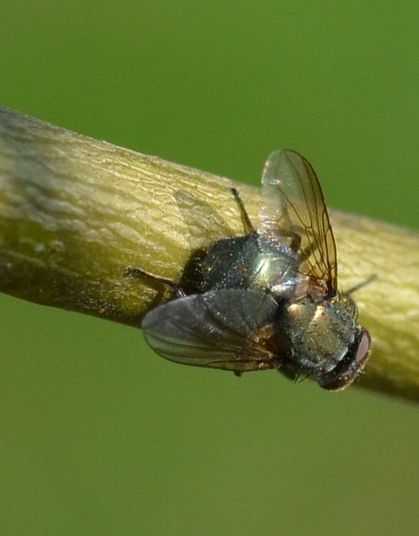 Da die Fliegen in meiner Kindheit massenhaft an klebrigen Fliegenfängern grausam zugrunde gingen, habe ich noch heute, da sie so dezimiert sind, ein positives Verhältnis zu ihnen. Das schließt das Aussehen mit ein. So stark unterscheiden sie sich auch nicht von der schönen Goldfliege.
