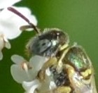 Es handelt sich um die weibliche Steppenbiene Nomioides minutissimus.