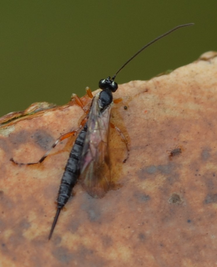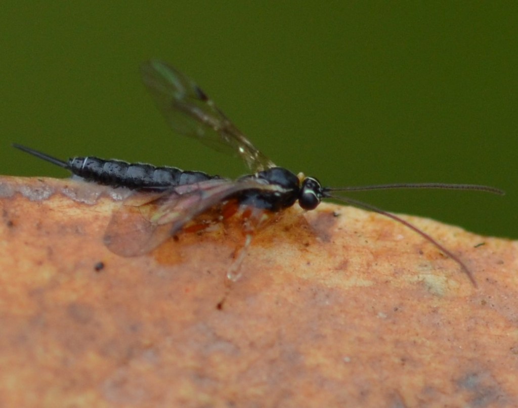 Dieses winzige Dingelchen unten, Tromatobia ovivora, Weibchen, hatte gewagt, aus dem Bottich zu trinken und geriet so in die