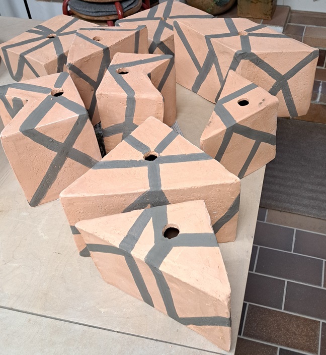 Vier dieser obigen Garten-Objekte sind jedenfalls durch. Ich habe sie vorhin aus dem Ofen geholt, mit Handschuhen.
