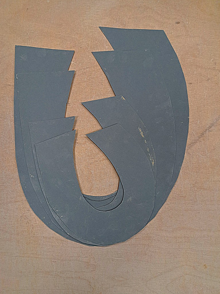 Hier hatte ich das “U” mit Pappe wiederholt , dabei immer kleiner werdend und sich aus der Anfangsform “rausdrehend” .