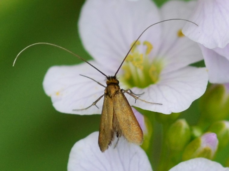 So die Schaumkraut-Langhornmotte – Cauchas rufimitrella,