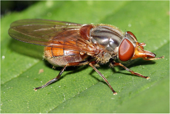 Ja, die Gemeine Schnauzenschwebfliege – Rhingia campestris.