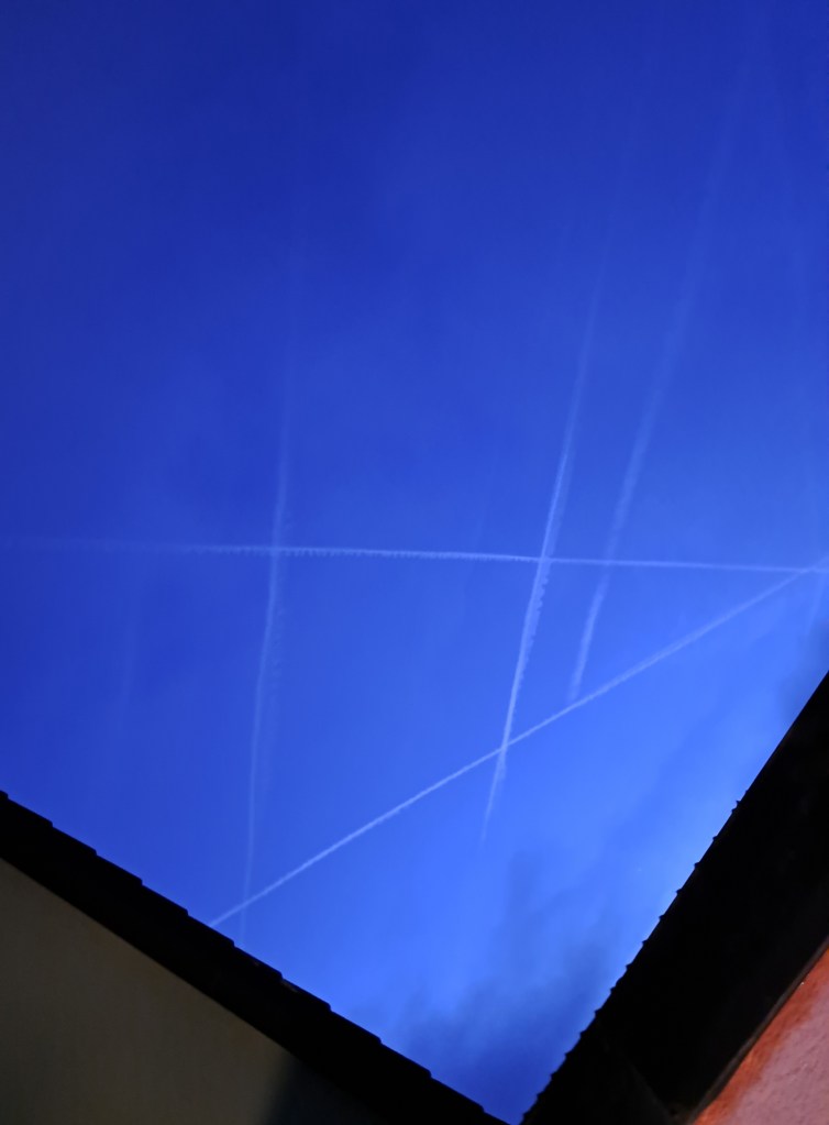 Dieser Blickwinkel im HĂ€usereck mit Sicht auf die geometrisch geordneten Kondensstreifen ist dir wirklich ganz super gelungen, Gerhard!!! LikeLiked by 1 person Reply