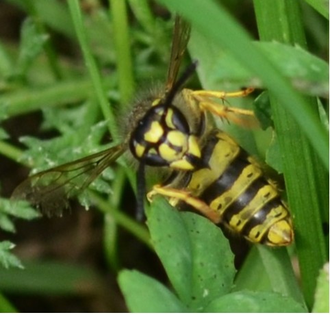 Im 2. Foto sieht man, daß auch der Unterleib gestreift ist. Auch das ja ungewöhnlich, aber so wird vielleicht die Wespenähnlichkeit besser unterstützt.