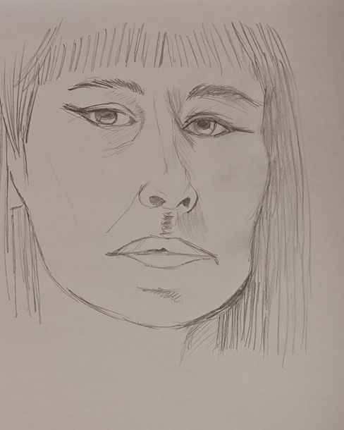 Zeitgleich zeichne ich ein Portrait, wenn ich ein entspr. Foto zur Künstlerin finde.