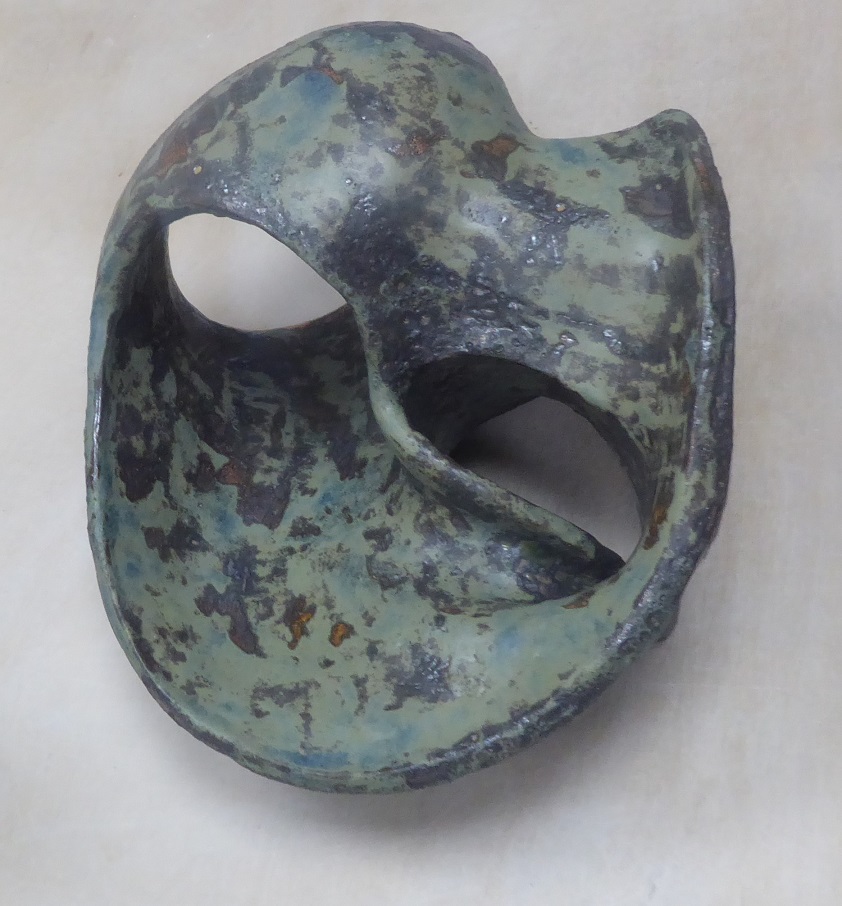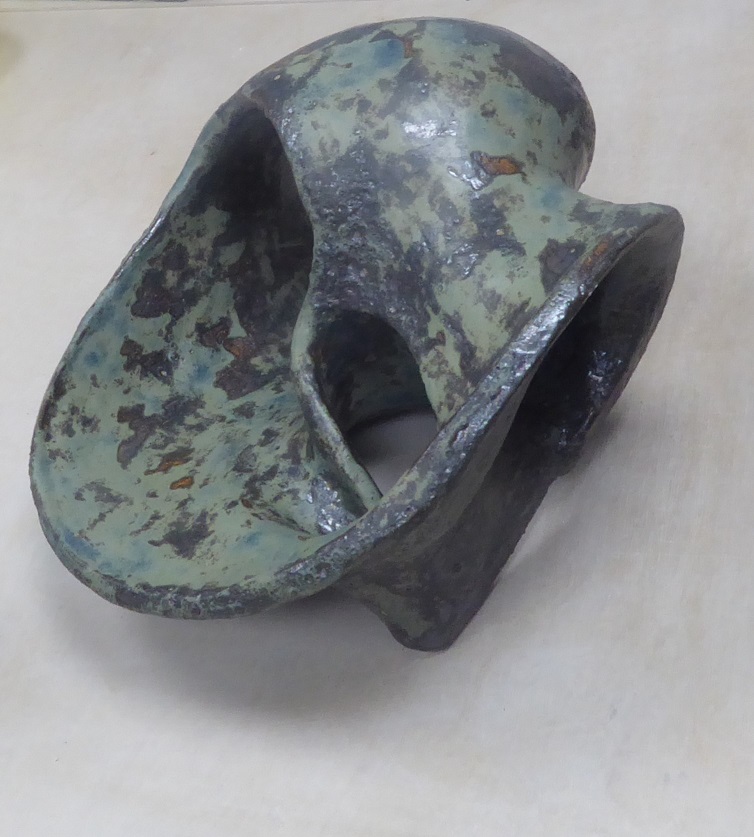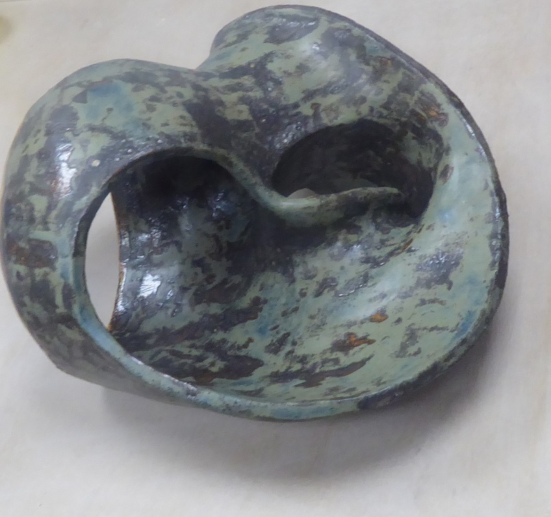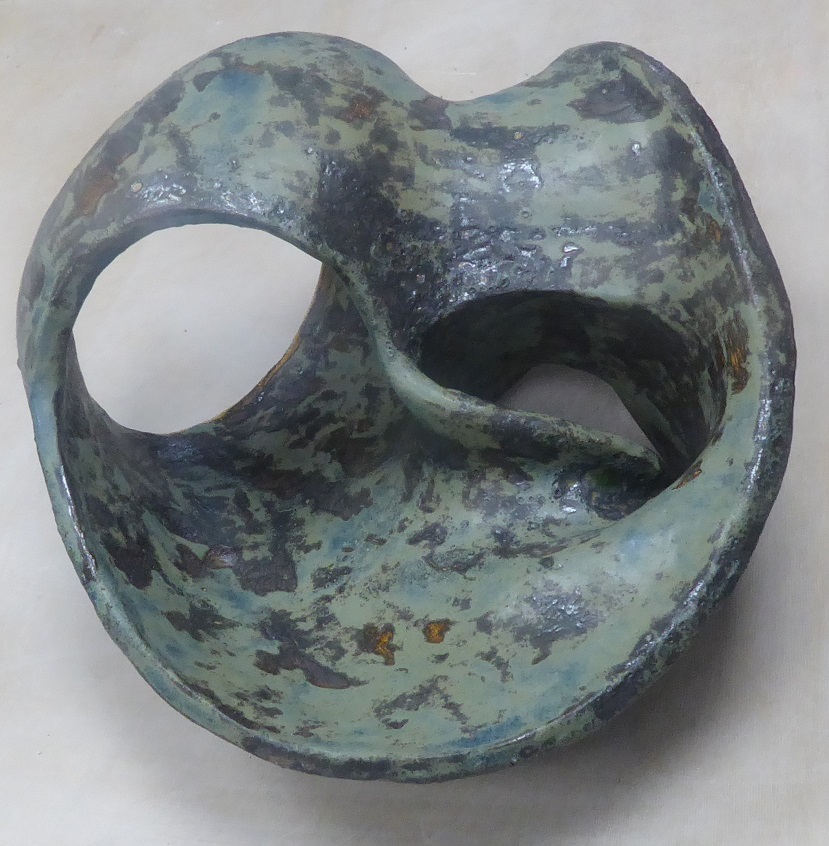Das folgende Keramik-Objekt, das ich m.E. noch nie explizit zeigte, habe ich neu glasiert – es ist scheckig wie zuvor, aber m.E. farblich angenehmer geworden. Zudem plane ich es liegend aufzustellen, wie hier: