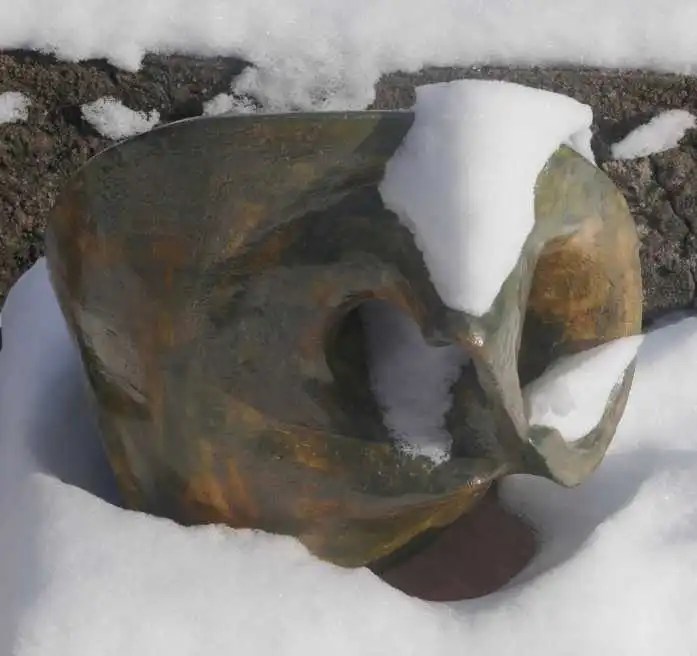 Mein Keramik-Kopf steckt ganz oben auf einer Stange und friert gehörig.