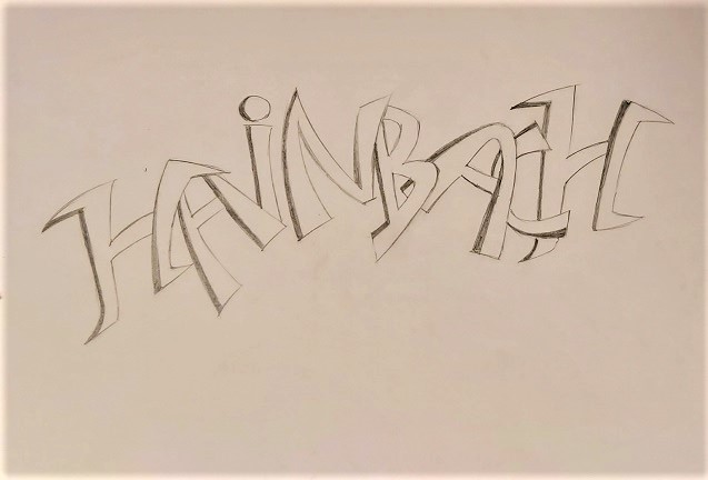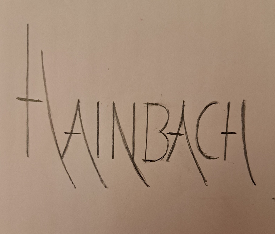 Hainbach als Musiker verfolge ich schon länger. Immer wieder drängt es mich, den Künstlernamen auch grafisch, mit dem Druckbleistift, “zu verewigen”. Das tue ich selten, manchmal abends, am Wohnzimmertisch.