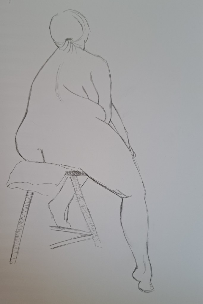 Unten eine frühere Zeichnung eines weiblichen Aktmodells.