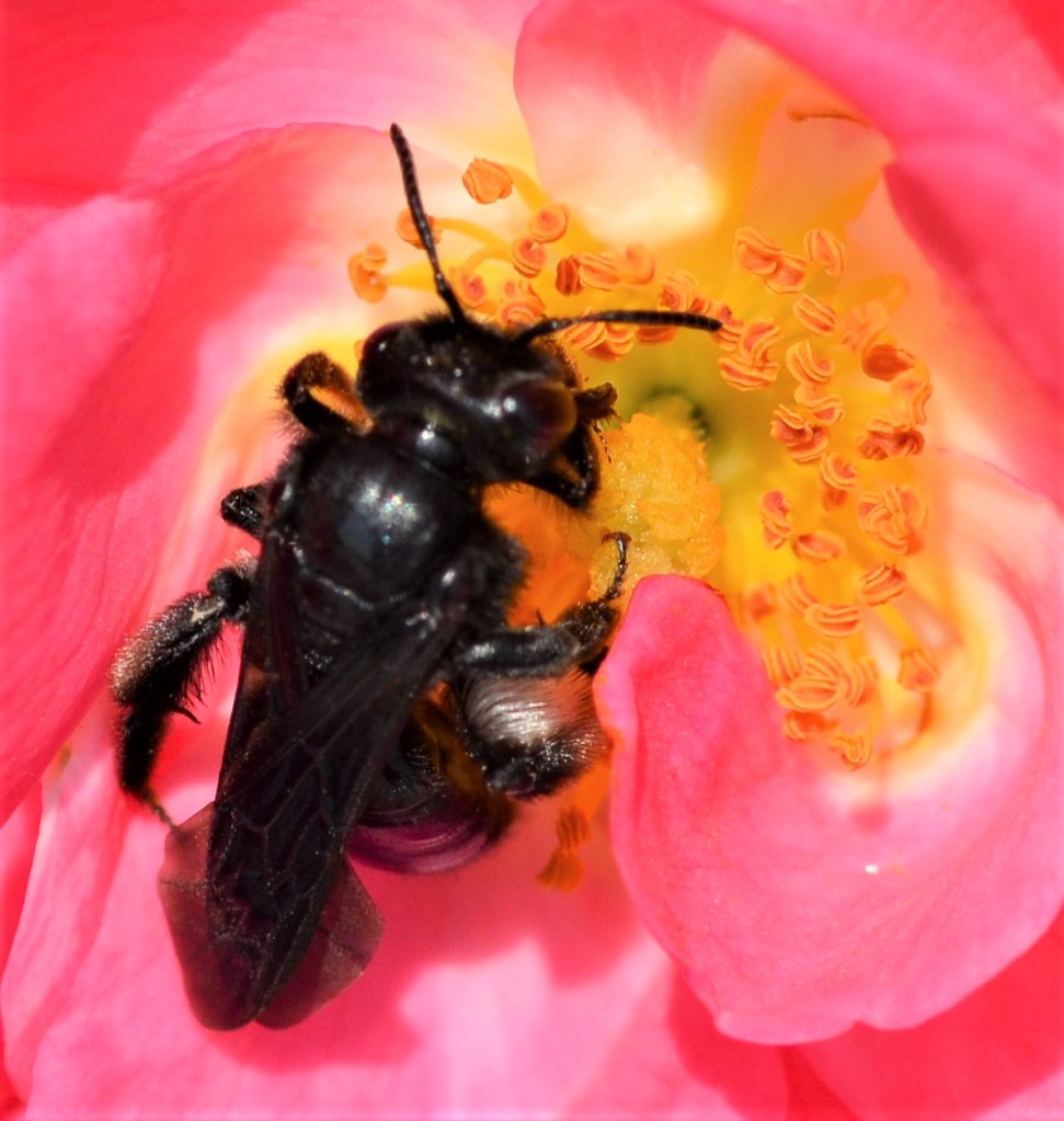 Kleine Holzbiene, Bruder der viel grösseren Holzbiene, die es bei uns zu beobachten gibt.