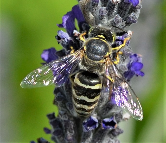 Eine Kreiselwespe, die Streifen weisslich, daher besonders.