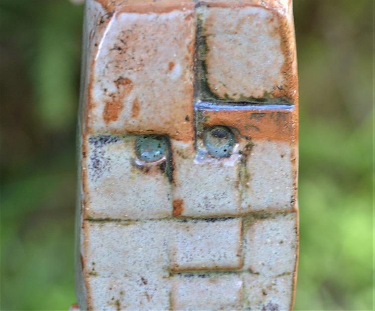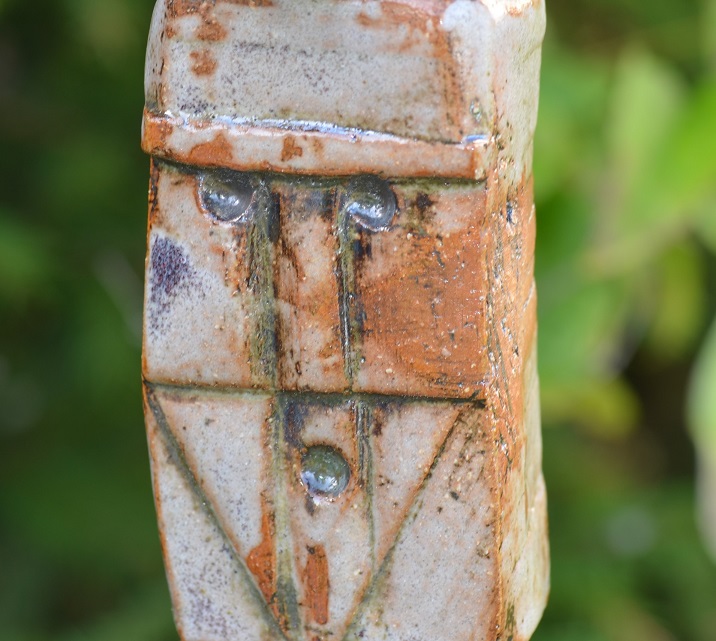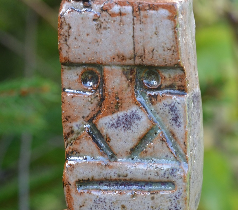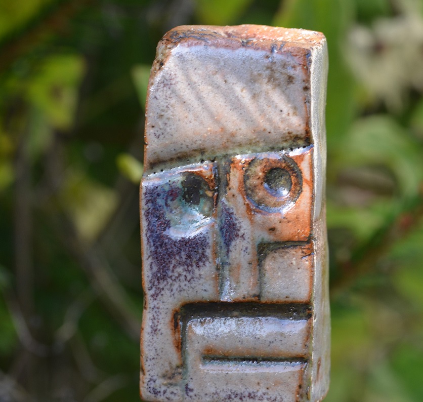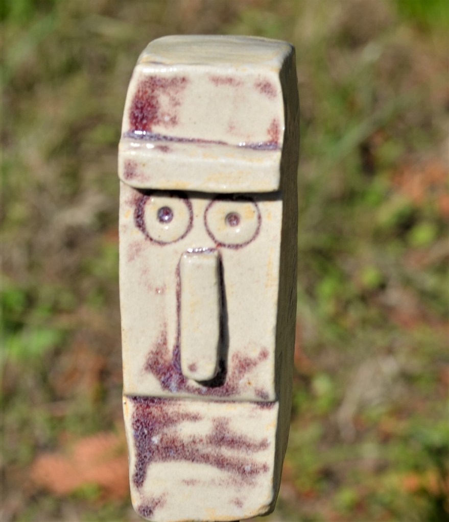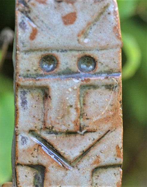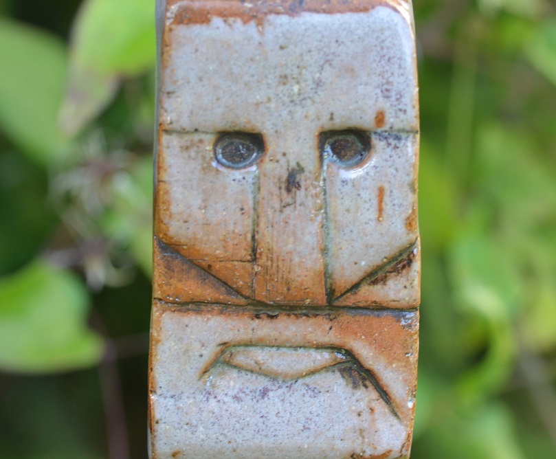 Eine kleine Parade von keramischen Köpfchen im Garten.